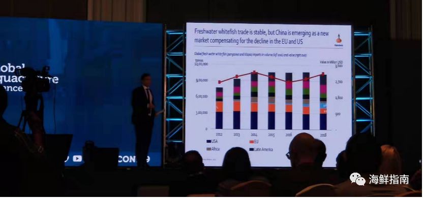 Stavanger 大学的行业经济分析师 Ragnar Tveteras 作为GOAL会议的常驻嘉宾,今年是第十三年为参会嘉宾带来全球养殖鱼类分析及独家数据。本次分享除罗非鱼、巴沙鱼、三文鱼、虹鳟、鲈鱼等常规大宗贸易产品数据之外,还包括鲤鱼、石斑鱼等特色鱼种。