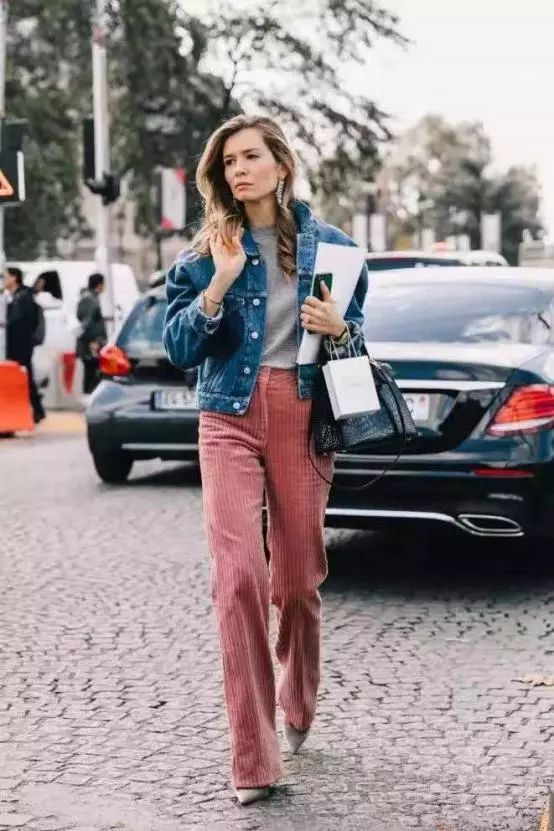 阔腿裤自带的慵懒效果,搭配上牛仔外套,将整个气质都变得格外慵懒性感,而从色彩来说,牛仔外套的色彩也非常搭阔腿裤,两者的核心内涵都非常接近。同时阔腿裤修饰了腿部线条,展现出别致魅力