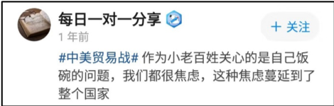 从某种意义上来说,这种“不认可”的态度其实也隐隐表达了一种对于中美贸易摩擦可能产生的后果的焦虑,有些网友更是直接地表达了这种焦虑与紧张。