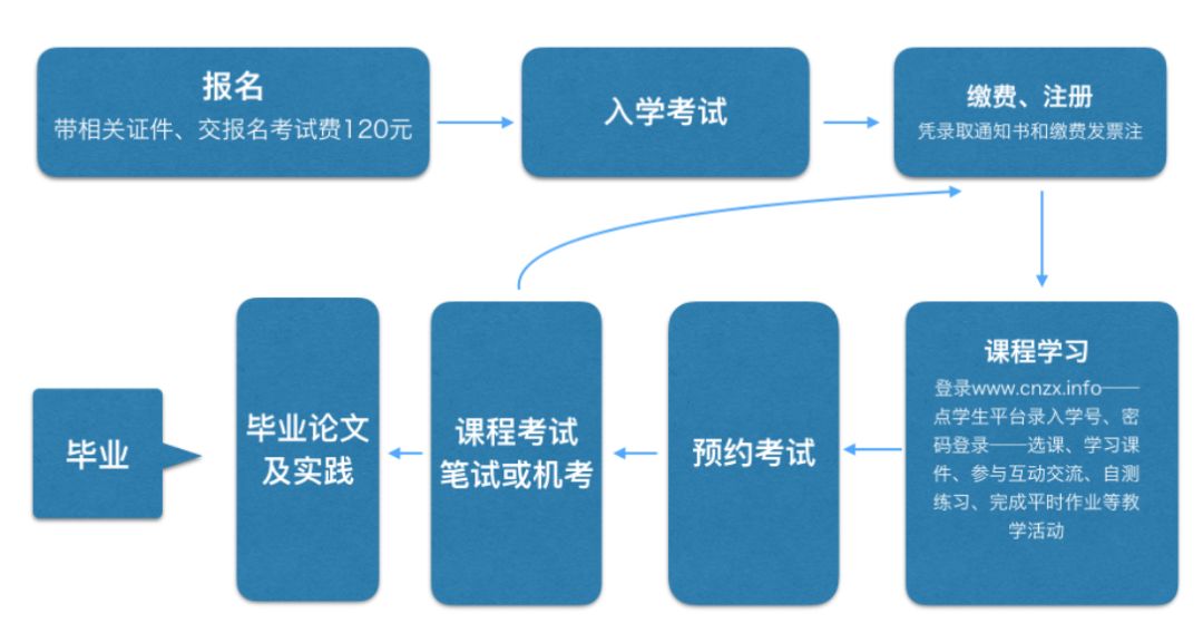 学生可通过所在地学习中心报名入学。报名所需材料:居民身份证原件和前置学历原件及复印件。非本地生源还需提供在本地工作生活的相关证明材料(详情请咨询所在地学习中心)。报考高中起点专科,须具有教育行政部门认可的普通高中、职业高中、中等专业学校、中等职业技术学校毕业证书或同等学力。报考专科起点本科,须取得国民教育系列高等教育(含高等职业教育、成人高等教育、网络教育、高等教育自学考试)的专科毕业证书。