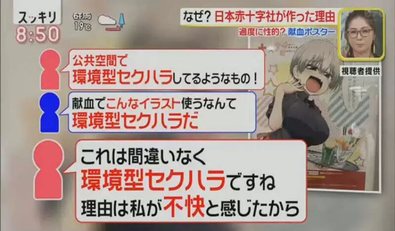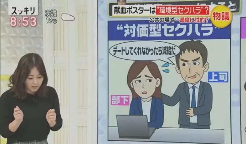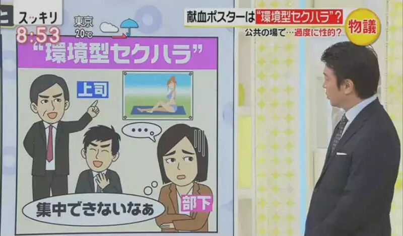接下来,节目开始介绍起网络上的反对派抵制这张海报的主要原因:环境型性骚扰(环境型セクハラ)。