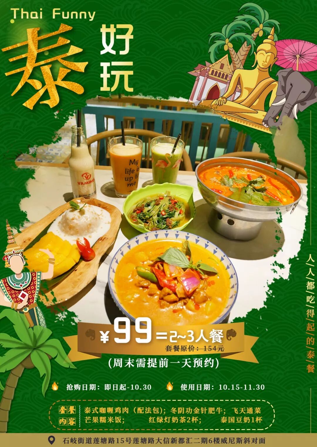 ① 冬阴功金针肥牛② 泰式咖喱鸡肉(配法包)③ 芒果糯米饭