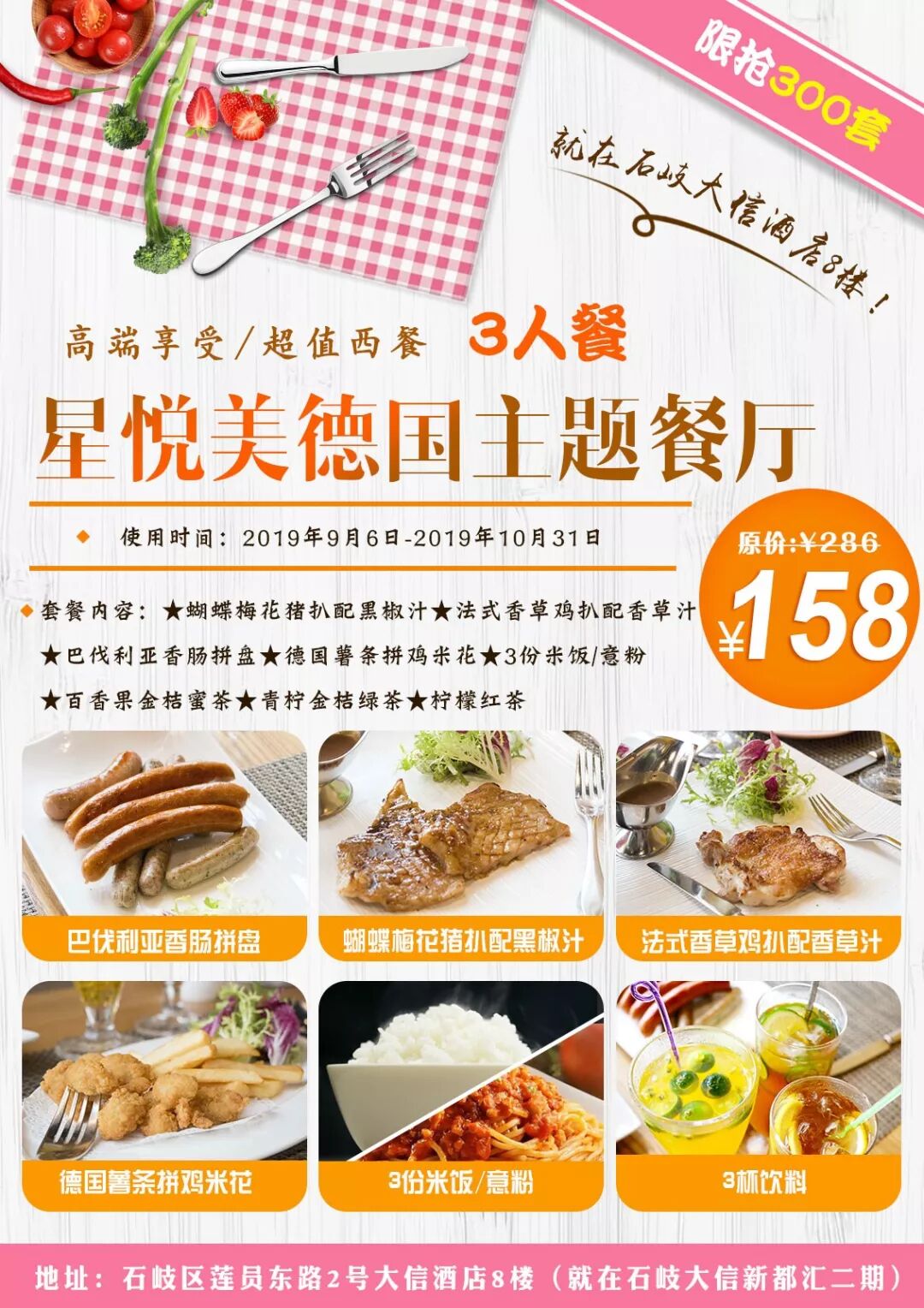 加收说明:国庆节10月1日-3日现场加收30元/套,其他日期均不加收;万圣节不能使用。供餐时间:周一至周日晚上:18:00-21:00(中途离场视为用餐完毕)。