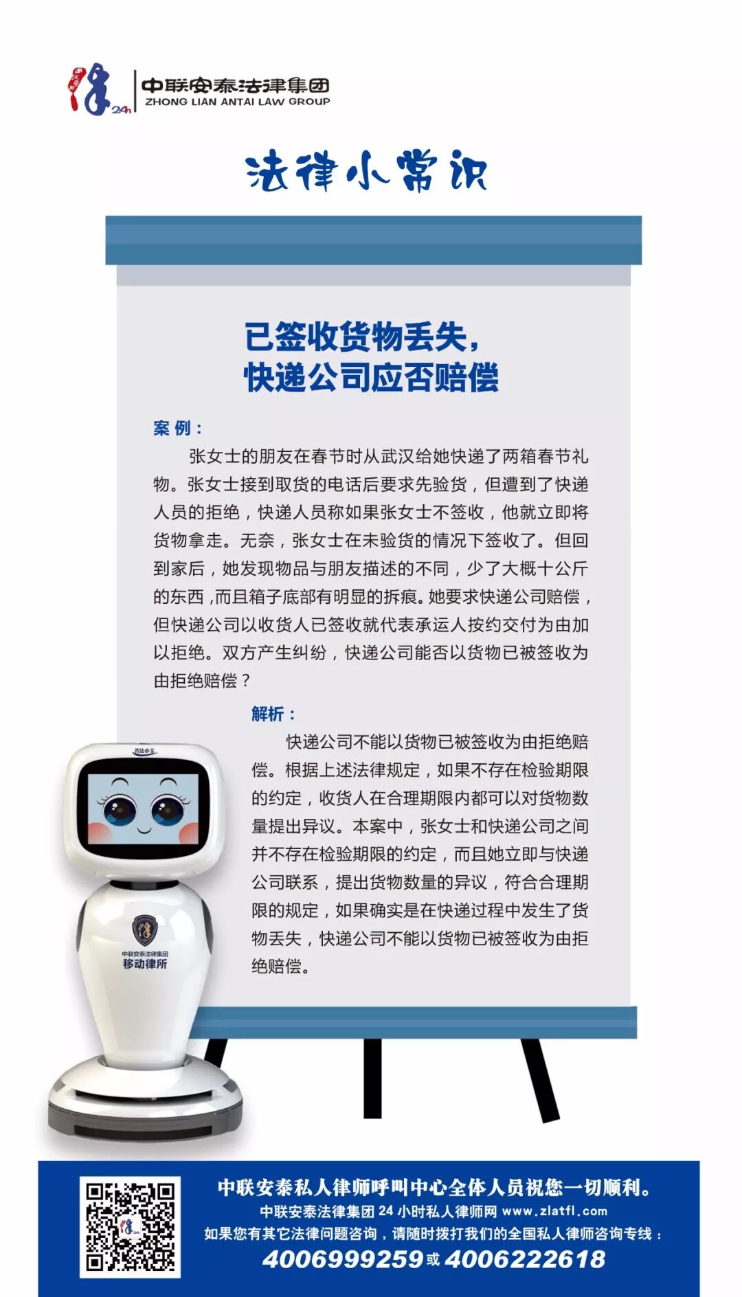从现在起,中联安泰给您一个随时随地拥有私人律师服务的机会,扫描下方二维码,购买民事类法律咨询产品,律师将为您提供一站式综合法律服务,完美解决您的法律困扰!