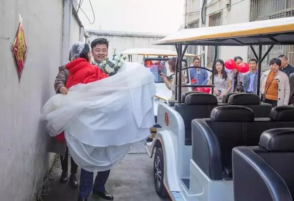 上午9点半,海钢营抱着新娘张琼文,在亲朋好友的簇拥下走上婚车。两位新人上车后,亲朋好友有的乘坐电瓶车,有的骑上共享单车,驶向婚礼现场。“如今低碳环保是时尚,低碳婚礼不仅时尚,还很节俭。”海钢营对记者说,在策划婚礼的时候他就考虑用低碳的方式进行,他的想法得到了新娘的支持,亲朋好友也赞同。