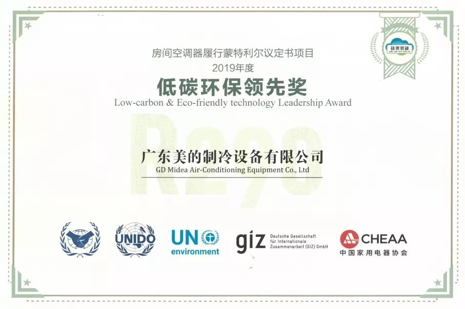 10月22日,一年一度的房间空调器行业HCFC-22(R22)替代技术国际交流会在佛山召开。会议上生态环境部对外合作与交流中心、联合国工业发展组织、联合国环境规划署、德国国际合作机构以及中国家用电器协会等5个主办方联合对2019冷冻年度R290房间空调器市场化表现突出的企业颁发了奖状,美的空调凭借在R290房间空调器市场化推广方面的突出贡献,成功斩获了“低碳环保领先奖”。