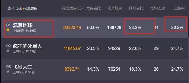 随后,《流浪地球》却凭借着口碑冲了阵线,排片占比和上座率也瞬间反超。目前《流浪地球》上映5天,票房已经将近15亿了。