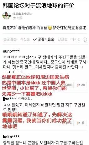 就在国内外对《流浪地球》一片赞誉之时,韩国的网友却呈现了不同的声音。面对《流浪地球》的大火,韩国网友显然十分地不屑,很多评论都带有酸味,有网友称:然而真正地让地球和周边国家的生病的是中国本身,还中国人拯救地球,少扯蛋了,希望你们先减少一些雾霾吧!