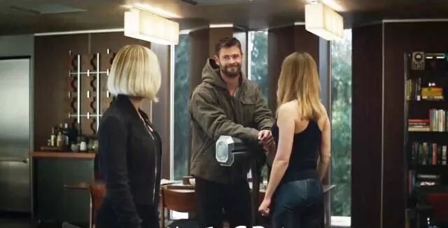 在这里,一直安静地坐在后边的雷神索尔站了起来,上演了上个月预告片中那个熟悉的场景。