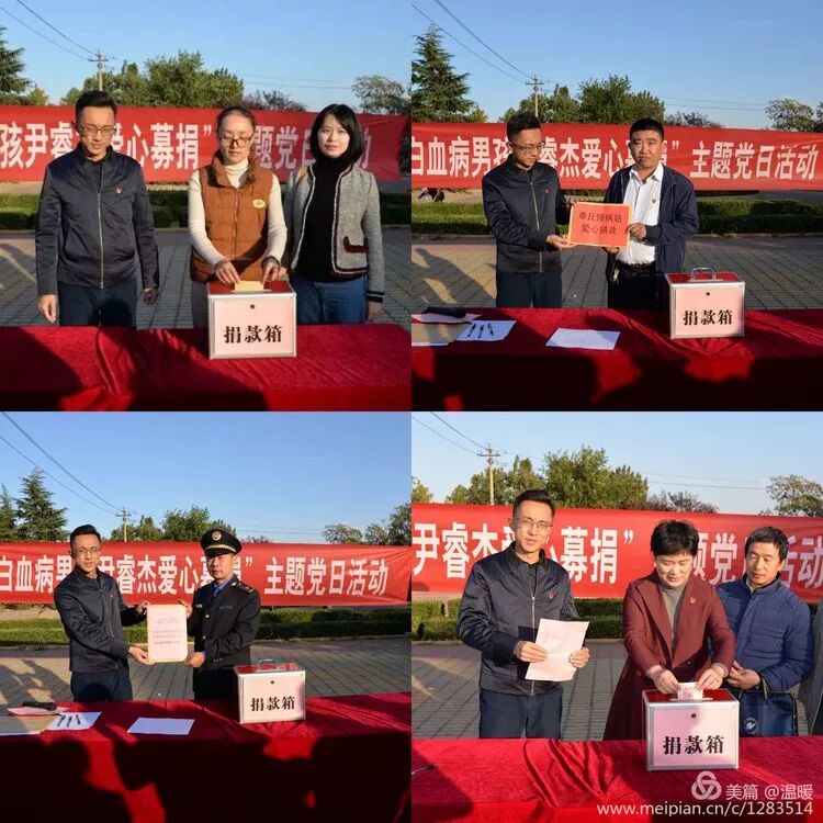 突患白血病,对于一个普通家庭来说无疑是晴天霹雳。10月25日下午,一场主题为“汇聚爱心,传递真情——白血病男孩尹睿杰爱心募捐”主题党日活动在眼明泉广场举行,大家相聚一起,共同帮助眼明泉东区的尹睿杰同学战胜病魔,渡过难关。据了解,三年前,尹守山9岁的儿子尹睿杰因为身体不舒服到济南一家医院检查,原以为只是一次普通的检查,不料,儿子的血常规却出现了异常!医生脸色异常凝重地将他叫到一旁,悄悄告诉他,可能为急性淋巴细胞白血病。连夜转院、血检、骨穿,经历了各种各样的检查,尽管有了一点心理准备,但还是承受不了这样残酷的打击! 虽然三年多的治疗花光了家里所有积蓄,还欠了近20万元的债务,但是孩子的病情总算稳定下来了。然而,就在一家人在一起高高兴兴迎接祖国70华诞的时候,儿子体内的白细胞急剧上升,病情复发住进了齐鲁医院。医生告诉他们,这次病情复发意味着孩子必须接受骨髓移植才能延续生命,后期治疗费用需要80-100万元。医生的诊断,让尹守山一家再次陷入崩溃的边缘,高昂的费用让他们实在无力承担,但是只要有一丝希望,他们也不愿放弃儿子的生命,即使以后要面临长达一两年的化疗和骨髓移植等待期,他们也要陪着儿子挺过去!
