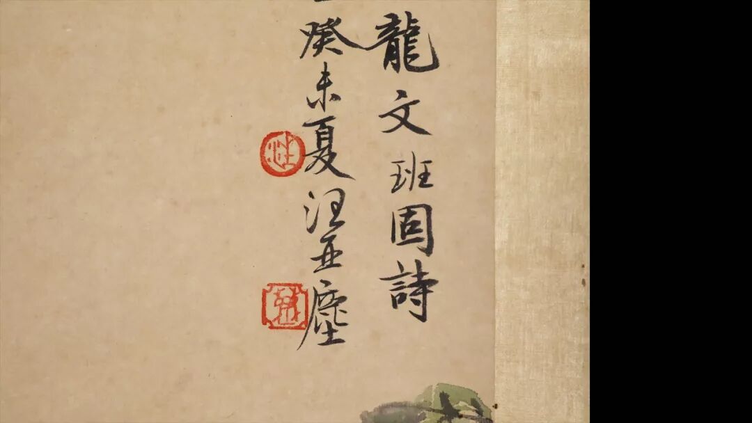 观察席意见:我们常说三分画七分裱,一个好的裱工肯定能为画心增色不少。我们可以看一下这个画心的外围,我们叫隔水或围挡。它用的是一个月白色,在月白色之外的天地杆用了一个湖蓝色,行话这叫双色绫裱。这在清朝是比较常见的,也建议我们广大的藏友朋友如果再遇到这样原装老裱的国画,尽量不去动它,不要破坏它整个裱头的状态,也会我们的国画增色不少。