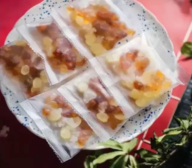 丽霞还很细心的将野生桃胶、皂角米、雪燕的最佳比例做成小袋的包装,这样搭配能够让桃胶的营养达到最高,你也能够省去自己搭配的时间,方便又营养。