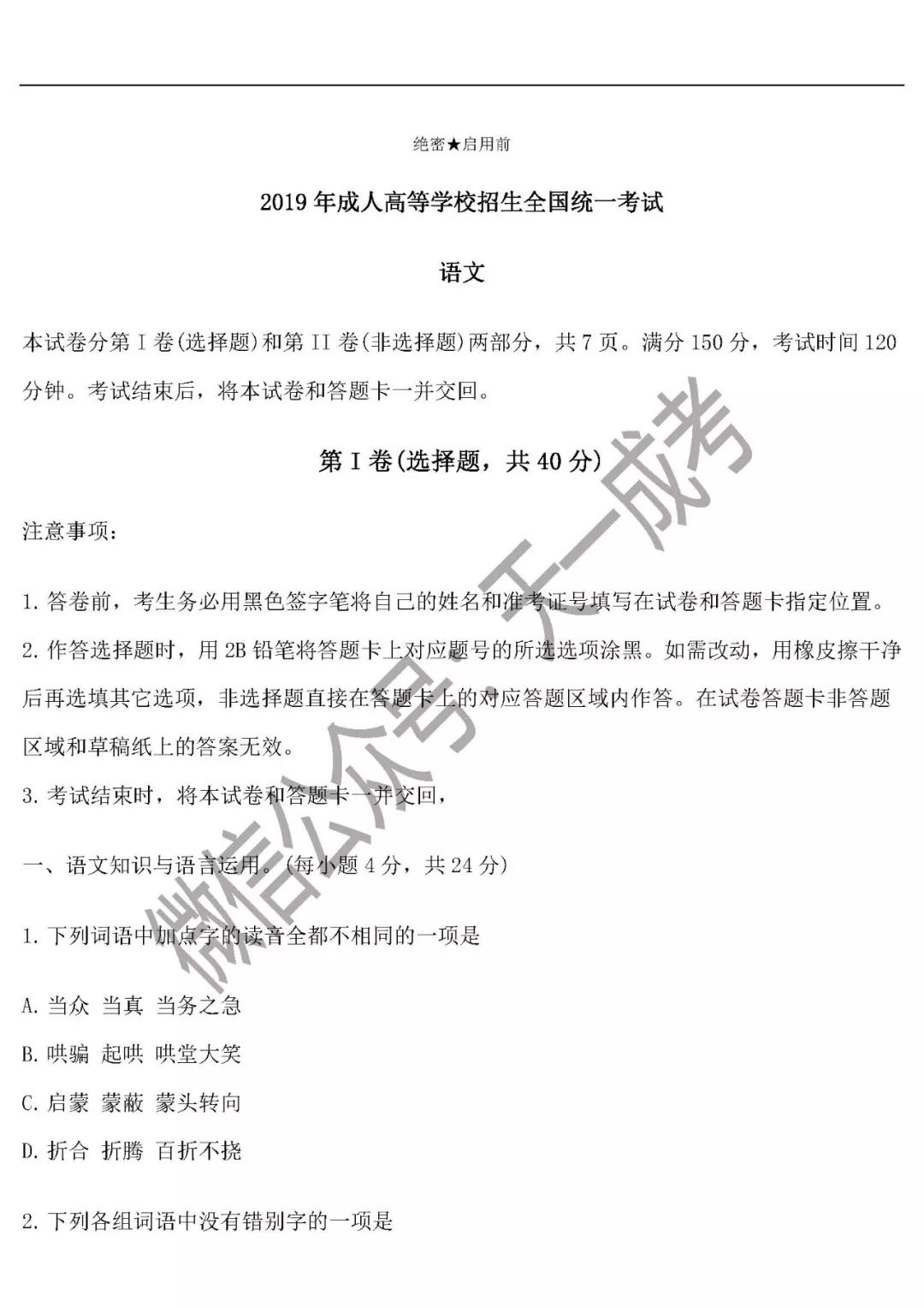【速对】2019成人高考各科真题及答案汇总!(网友回忆版)