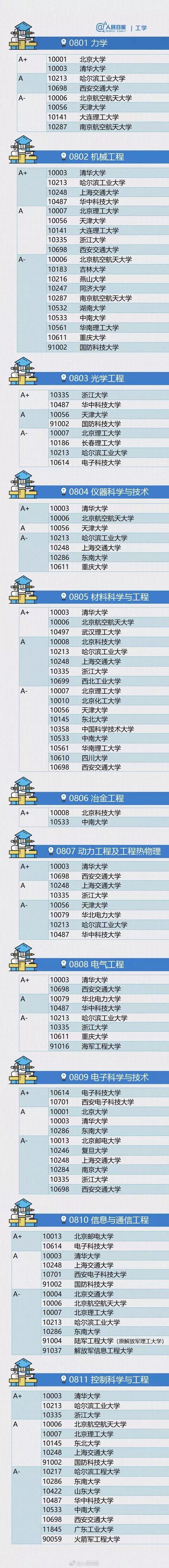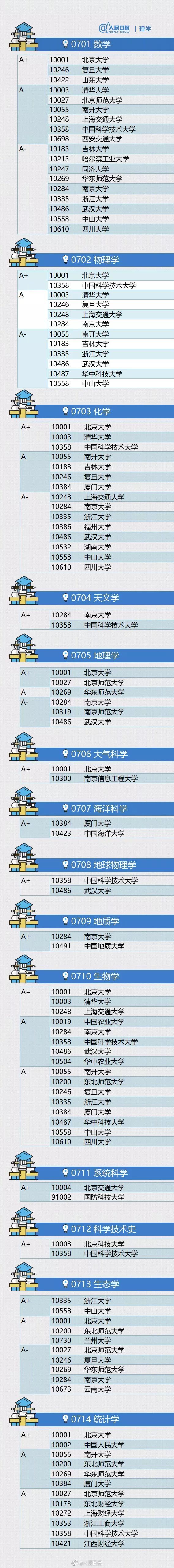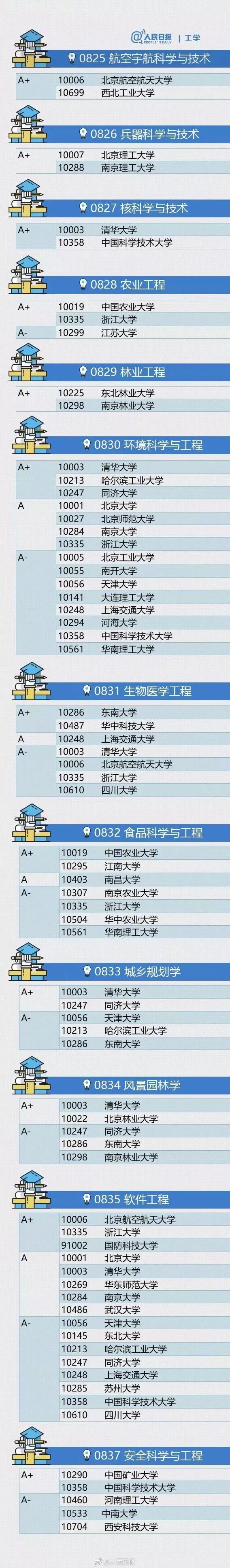 人民日报微博专门整理汇总了A类学科(包括A+、A、A-三档),来看看这些中国顶尖的学科名单都分布在哪些大学?