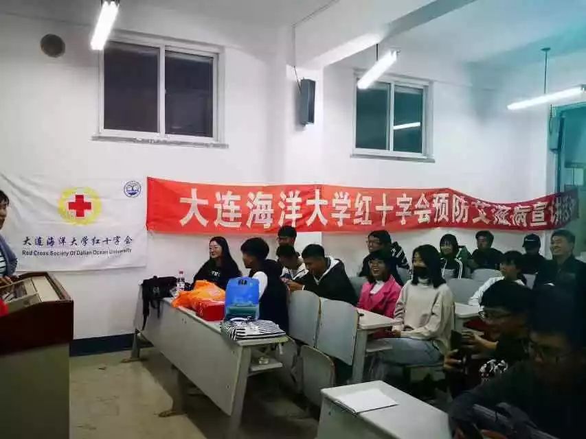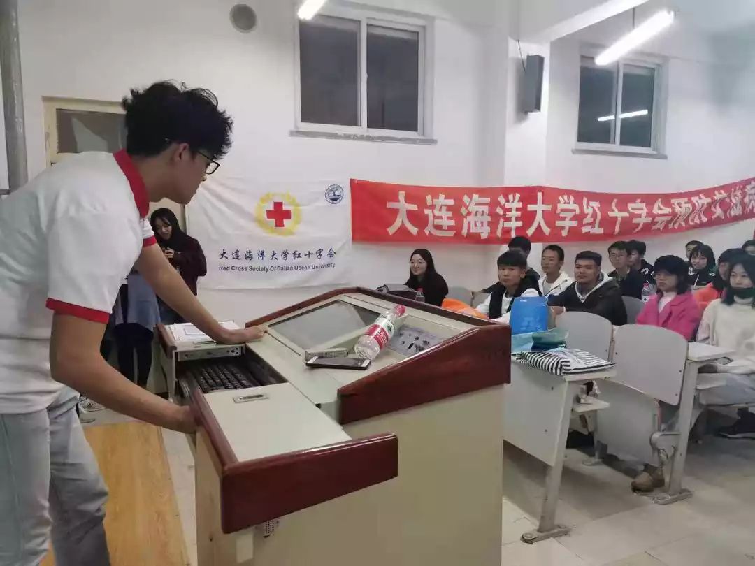 大连海洋大学红十字会于10月26日在二教215进行红十字会文化传播及应急救护活动,活动由副主任李晋静主持讲解。