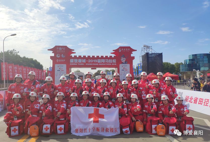 10月27日上午7点30分,2019襄阳马拉松在襄阳诸葛亮广场鸣枪开跑,24个国家和地区的1.8万人奔跑在襄马赛道上。由襄阳红十字赈济救援志愿服务队、襄阳红十字博爱体能训练中心、襄阳红十字聚仁救援志愿服务队、襄阳红十字器官捐献志愿服务队、襄阳红十字精神文明传播志愿服务队共100名志愿者组成的红十字急救志愿者服务队作为医疗辅助力量为襄马保驾护航。