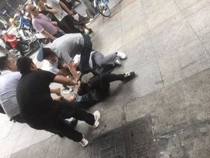 正在大家不知道该如何处置歹徒时,对方突然紧紧抱住一名路人的大腿,这让众人大吃一惊,一时间,其他路人不敢靠近歹徒。